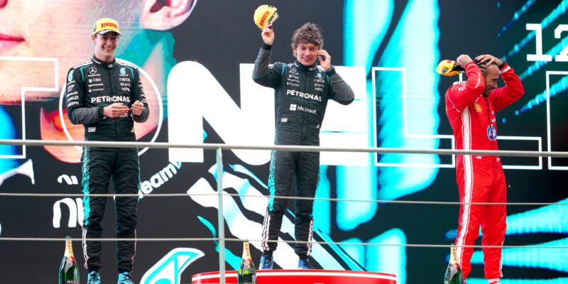 Ferrari se tehdy podařilo nejen znovu předjet Russella přímo na trati, ale také ho po poměrně dlouhou dobu udržet za sebou. Zdá se, že Ferrari dokázalo pneumatiky rychleji dostat do optimální provozní teploty. Jakmile však Russell ve 29. kole oba vozy Ferrari znovu předjel, následoval výrazný pokles výkonnosti.