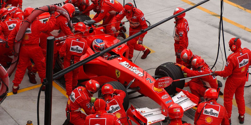 „Na konci operace jsme si uvědomili, že pitstop, kde mění pneumatiky a doplňují palivo, je v podstatě to samé jako to, co děláme při předávání,“ vzpomínal Martin Elliott. Na nic nečekali a zavolali přímo jednomu z týmů, do Ferrari. A ti je pozvali na návštěvu do Itálie.