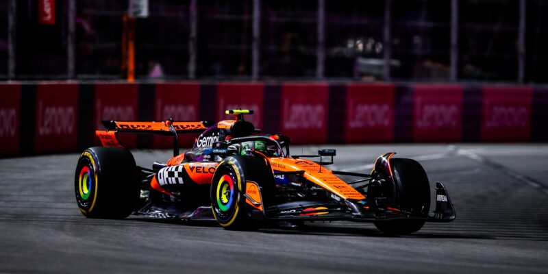 Las Vegas je o tom, že využijete své šance a vyhrajete velké peníze, i když vlastně nemáte tušení, jak se vám to podařilo. Přesně to se stalo Landovi v kvalifikaci, kdy na zrádné, kluzké a mokré trati statečně vybojoval svou sedmou pole position v sezóně. „Promiňte, pokazil jsem to,“ řekl v rádiu po posledním kole, ve kterém několikrát dramaticky sklouzl. „Jo, ale je to pole position,“ odpověděl mu inženýr Will Joseph, na což Lando jen řekl: „Oh. Nikdo jiný nezajel kolo, nebo co?“